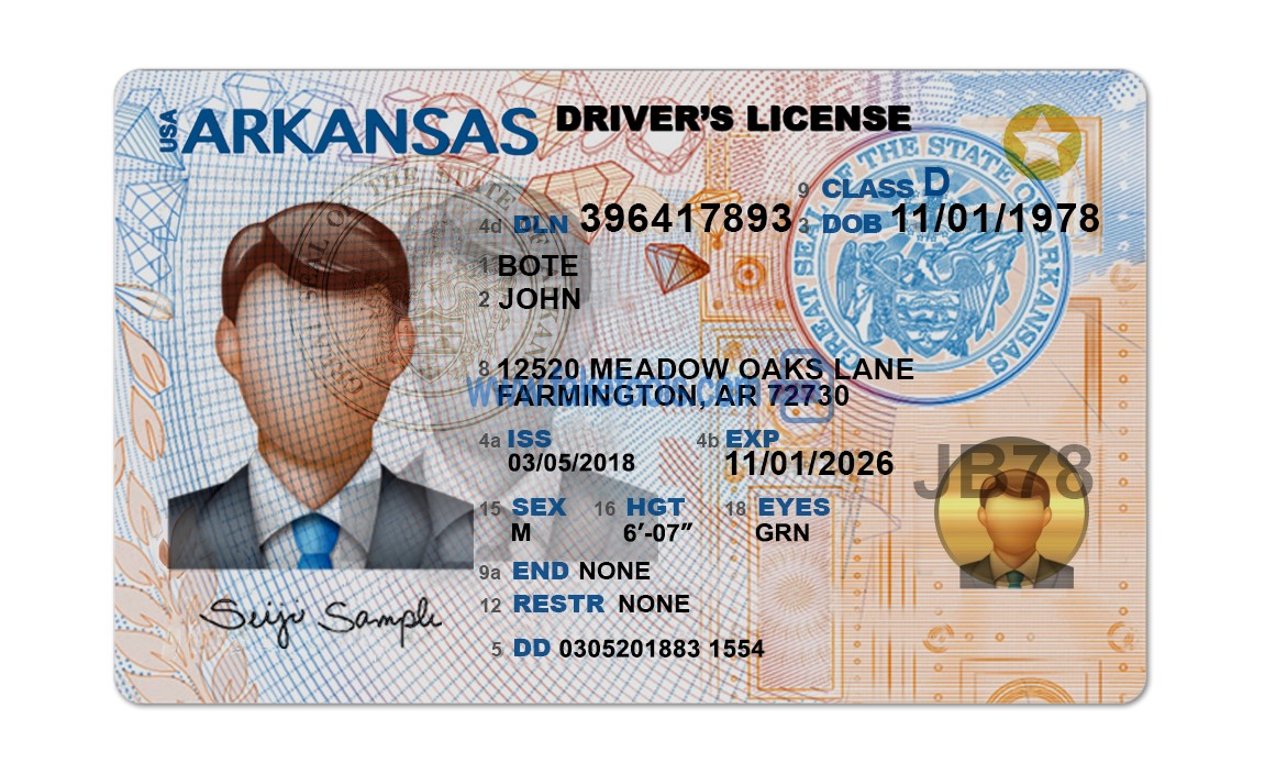 Arkansas driver license Psd Template. you can edit this template and put any name, address, license number, Id number, birth date, height, weight, expire date, change photos etc.