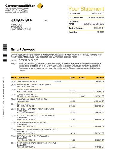 Commonwealth Bank Statement psd template. Fully editable photoshop template.