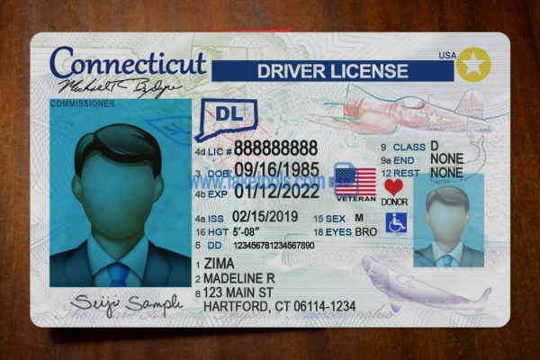 Connecticut driver license Psd Template. you can edit this template and put any name, address, license number, Id number, birth date, height, weight, expire date, change photos etc.