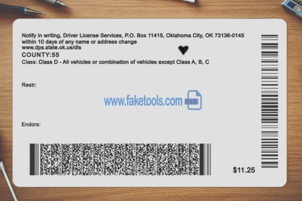 Oklahoma driver license Psd Template. you can edit this template and put any name, address, license number, Id number, birth date, height, weight, expire date, change photos etc.
