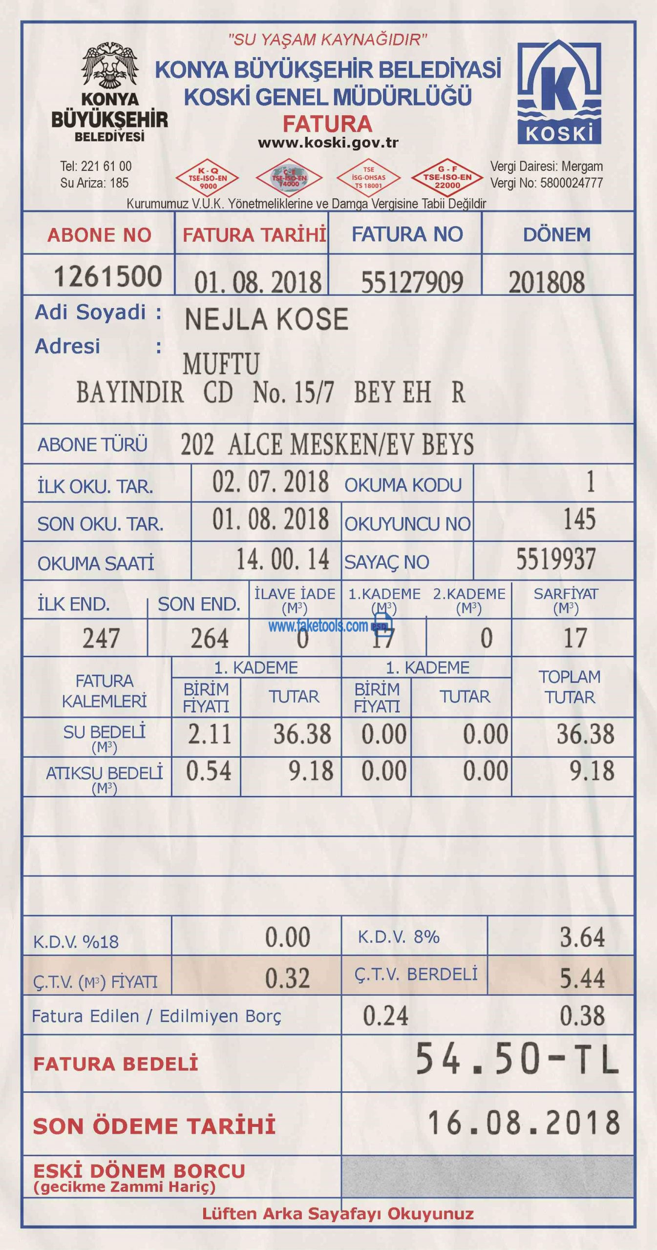 Turkey Utility Bill psd Template: Turkey Proof of address psd template