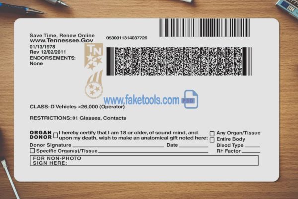 Tennessee driver license Template (photoshop) is best for verify-